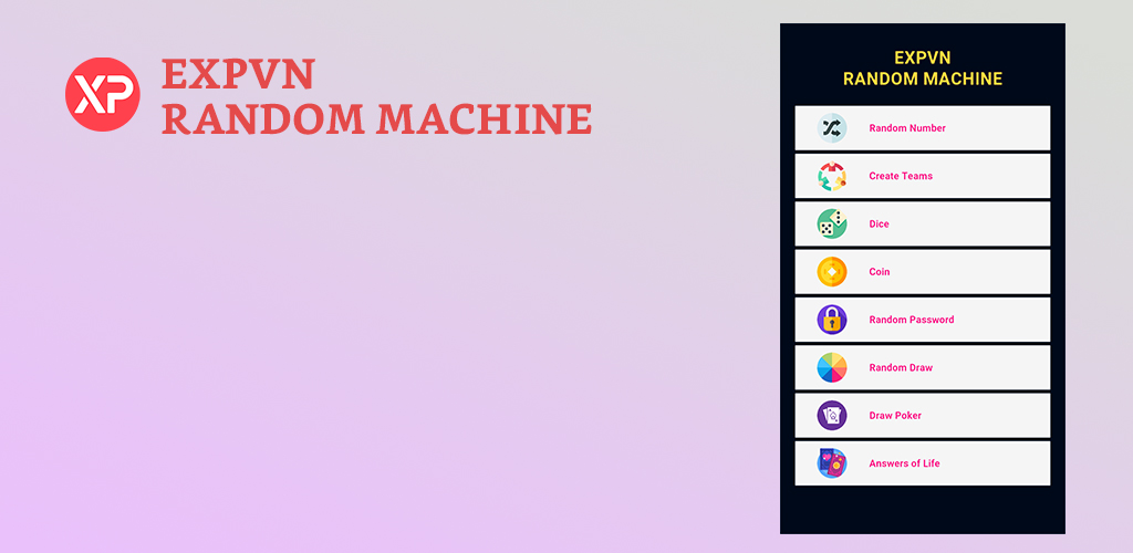 Random Machine là ứng dụng miễn phí, giúp bạn dễ dàng tạo ra các kết quả ngẫu nhiên.