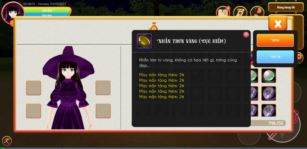Become a witch in another world có chức năng chế tạo trang bị, giúp bạn sở hữu những trang bị mạnh mẽ theo ý muốn của mình.
